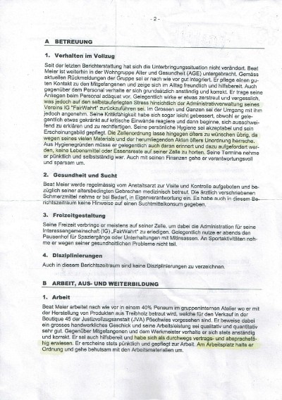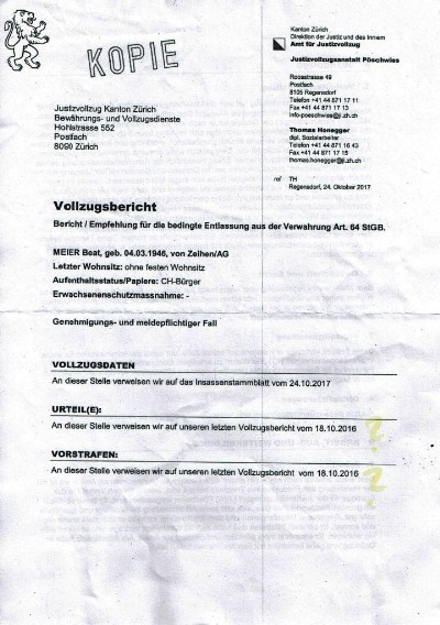 Vollzugsbericht-Korrespondenz mit Dir. Naegeli